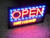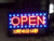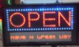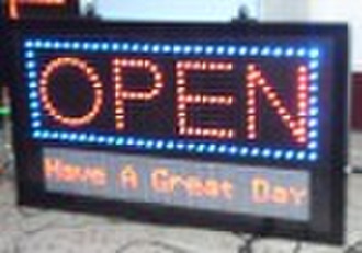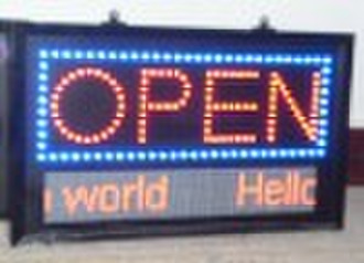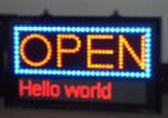Application: Such as: shop, supermarket, retail store, speciality store etc. Features: Open sign, letters Red. The blue lamps is dynamic, light one by one. The display word is contorl by the computer input. The power collector and the sizeare according to customers requirement.